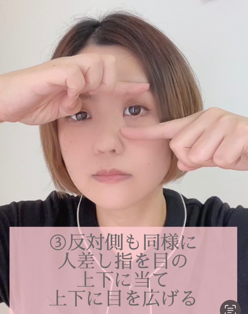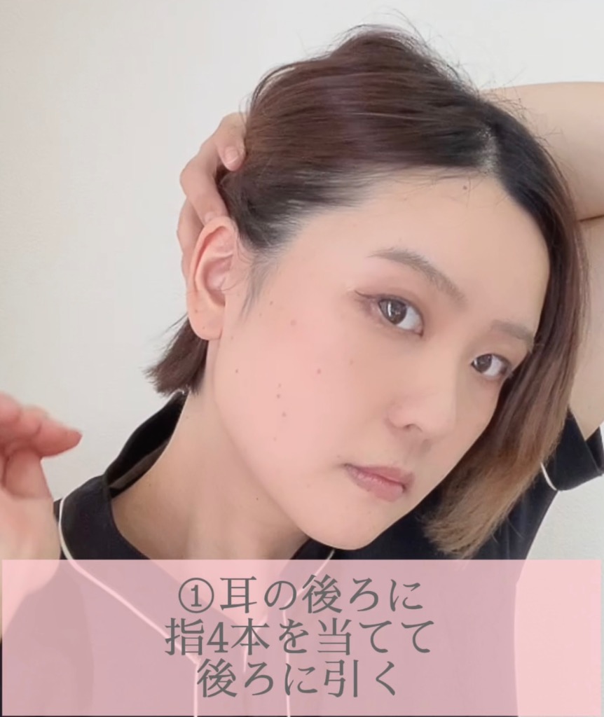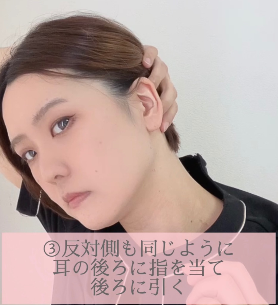 ③反対側も同じように耳の後ろに指を当て後ろに引く