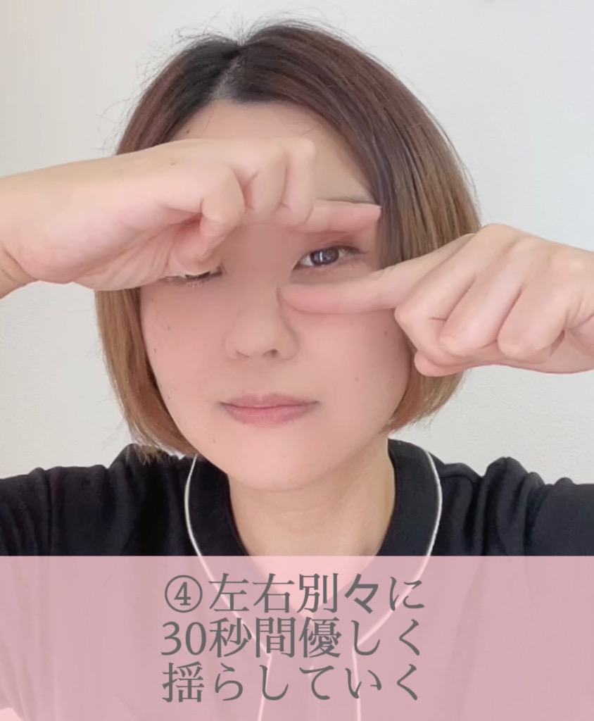 ④鼻のすぐ横に手の平を当てて顔の中心に向かって