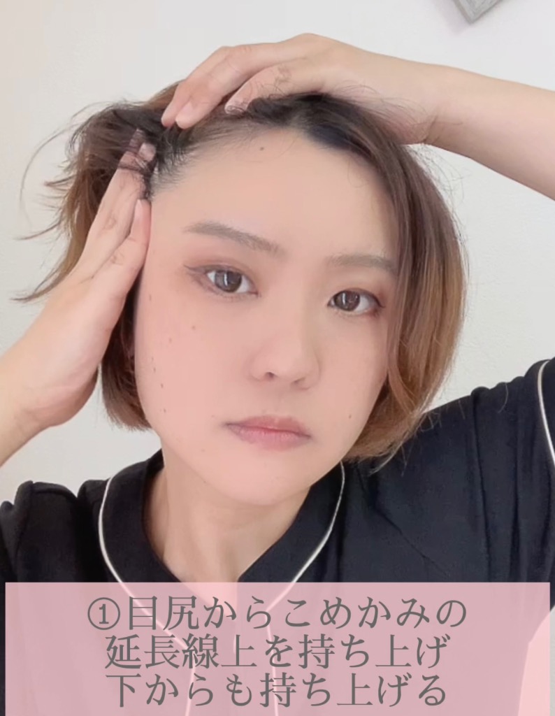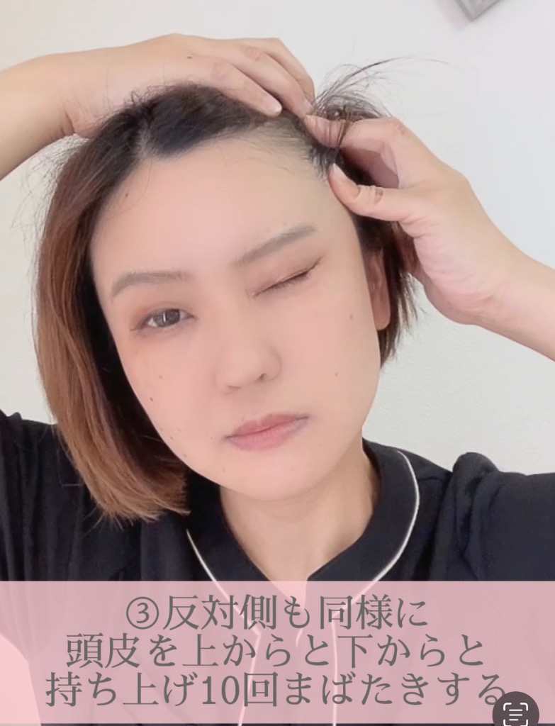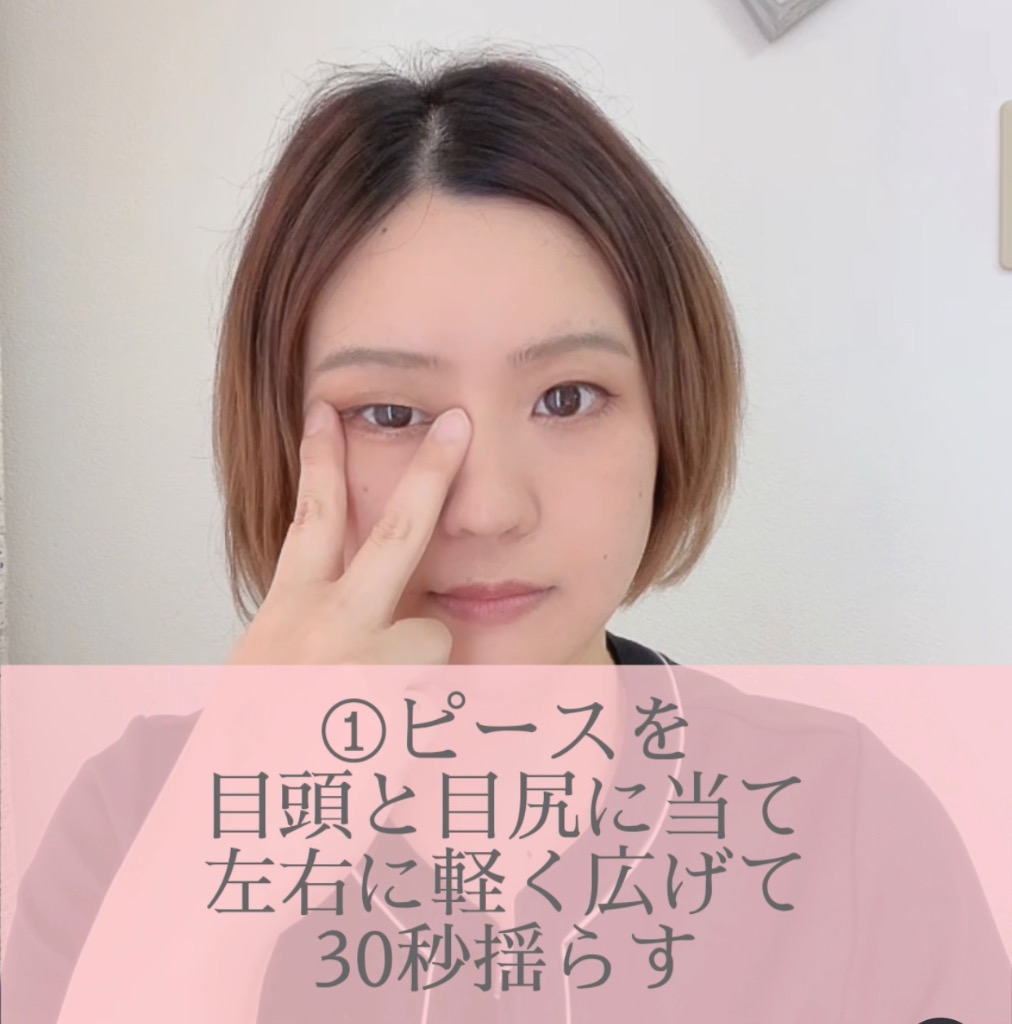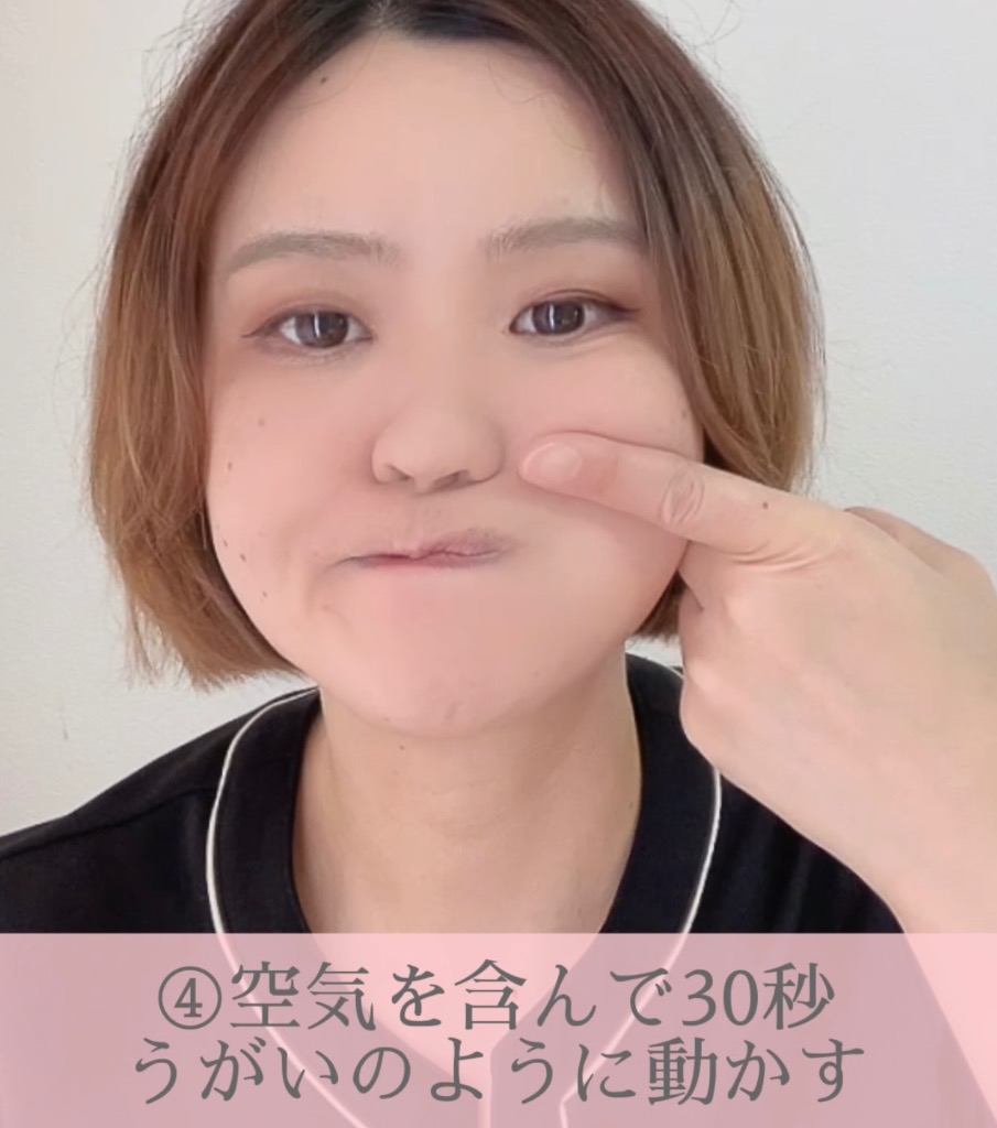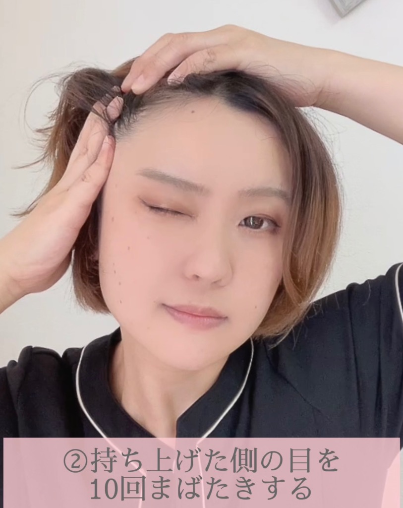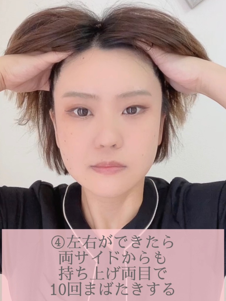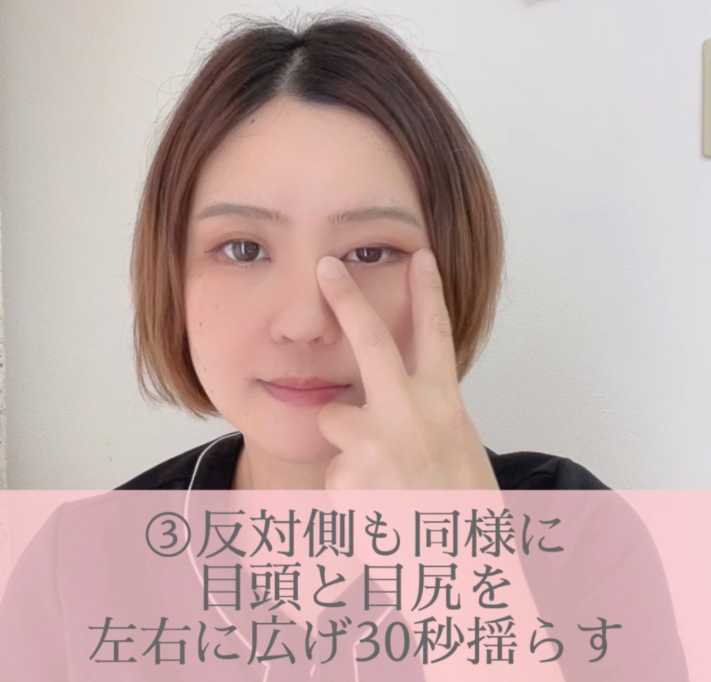 ⑤つまんだまま前に引っ張りつつ反対の手で頬骨を優しく 30秒おさえる